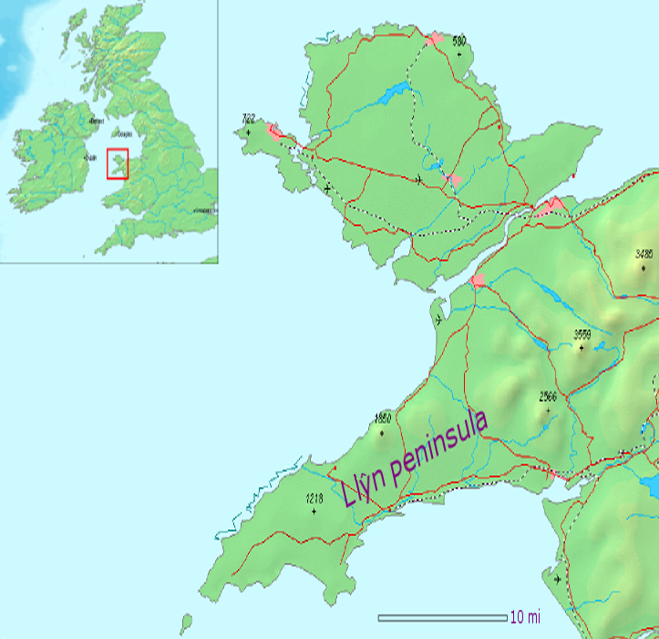 The Llŷn Peninsula in Gwynedd (Penrhyn Llŷn or Pen Llŷn in Welsh) is sometimes called The Arm of Snowdown or The Landsend of Wales. It is a 30-mile-long finger of land that juts out from North West Wales into the Irish Sea.